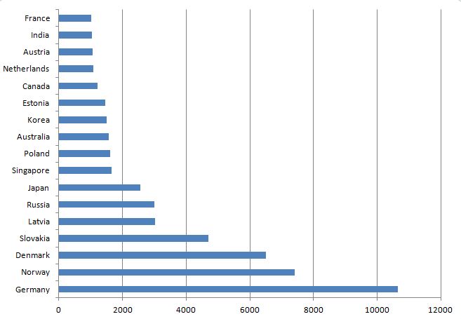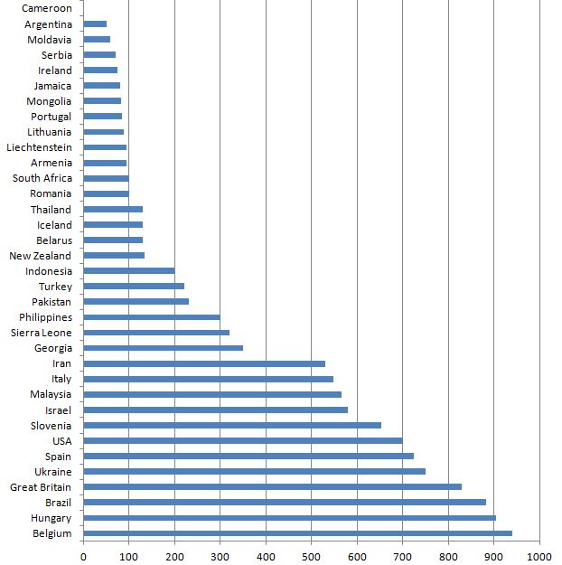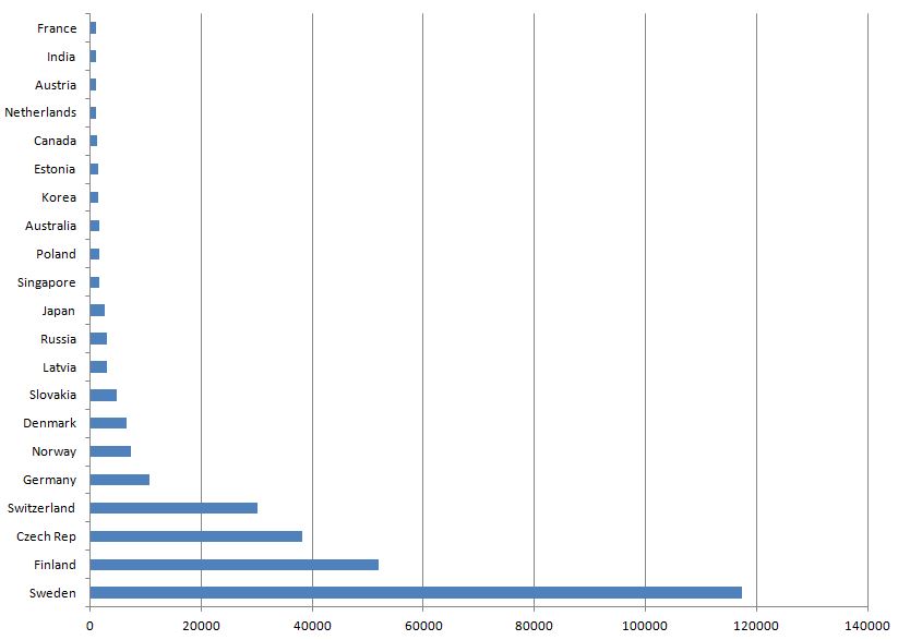 If we look at the nations fra 1000 players and up to the big 4, the picture goes like this
