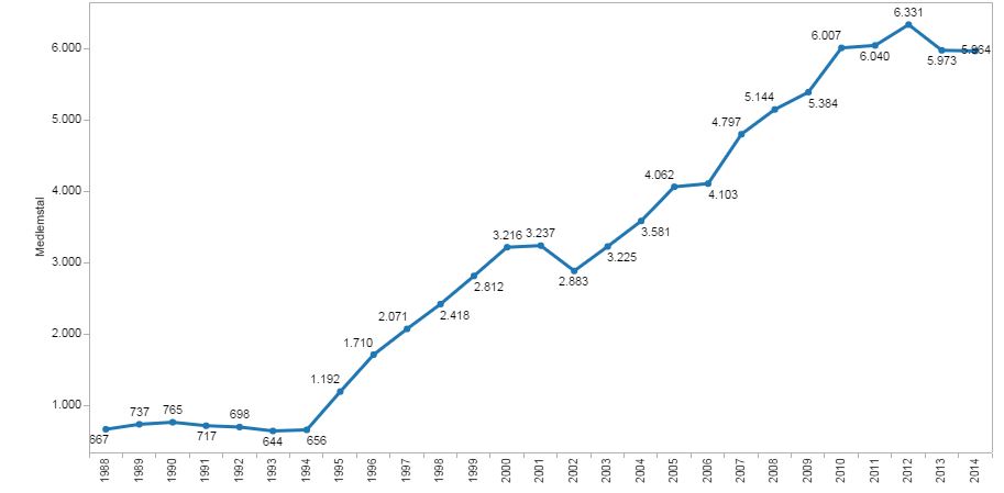 Så floorball har været i en lang vækst, men har som det kan ses, stagneret noget de seneste 3 år.